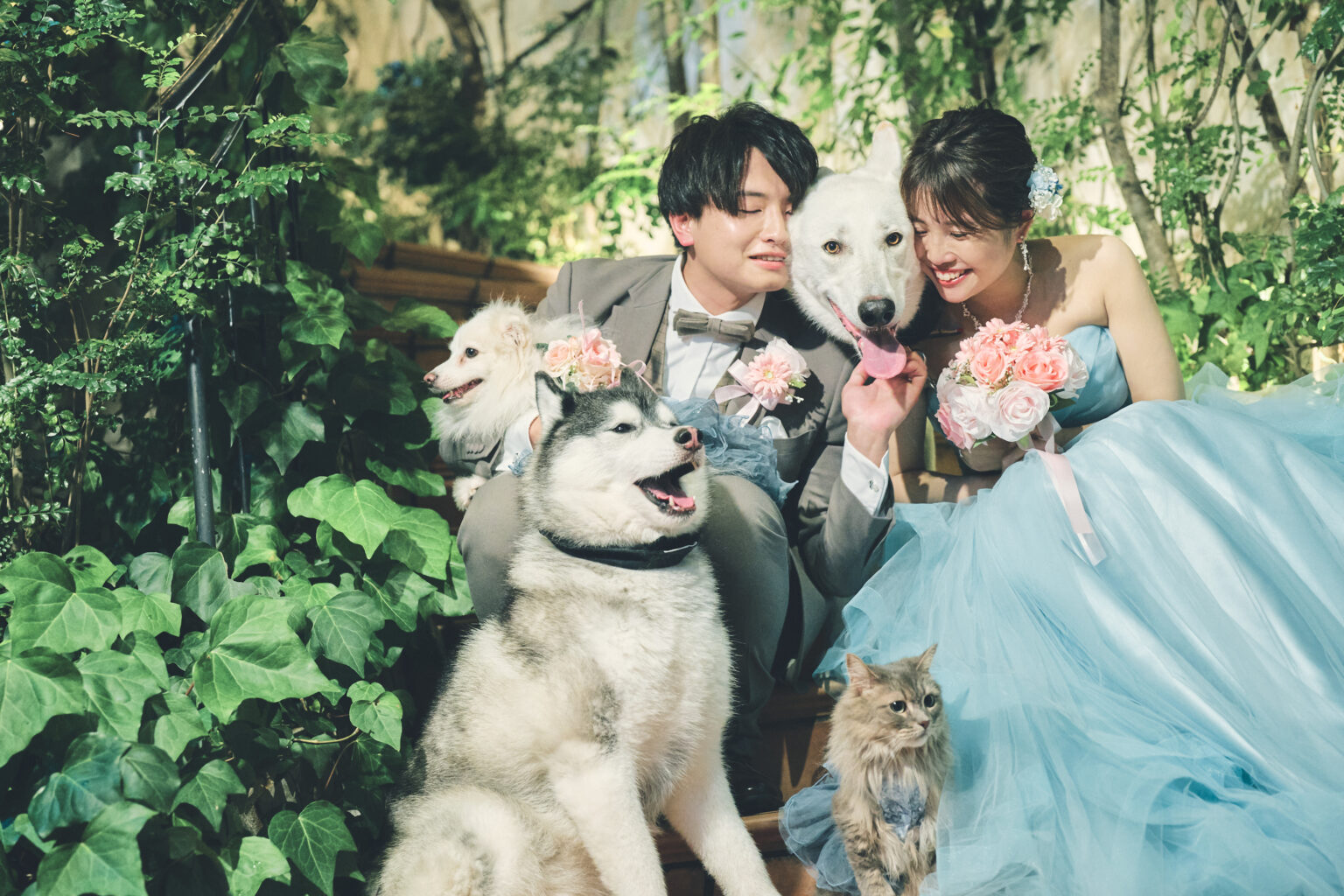 愛犬&愛猫が見守るなか、緊張しつつも笑顔のおふたりです。